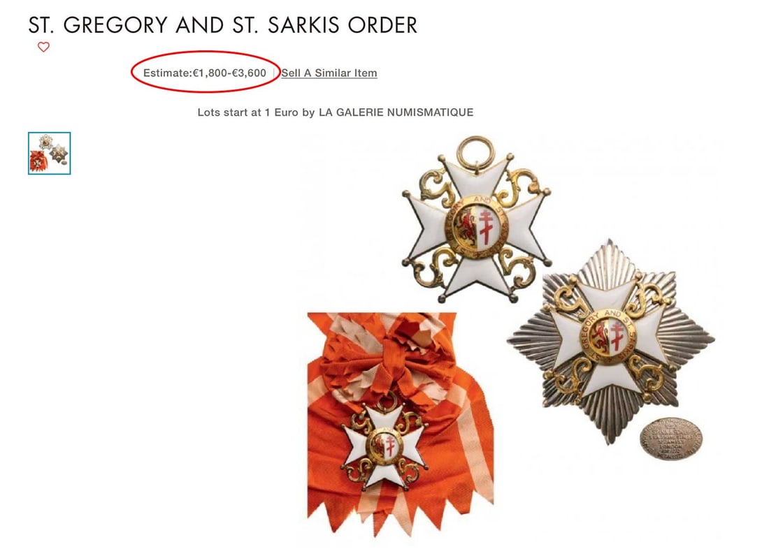 St. Gregory & St. Sarkis Order, Grand Cross Set Auction